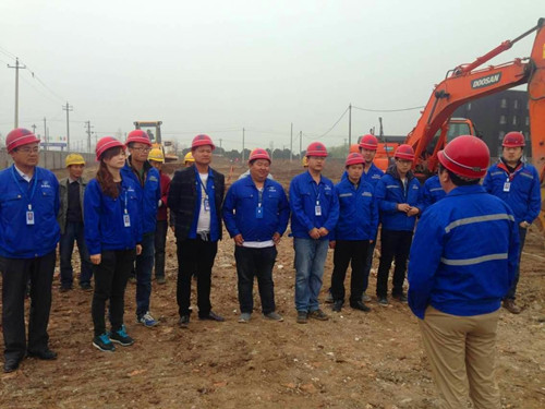 3月17日,在挖机平整场地后,项目部经理李稳组织全体施工人员进行开工前的讲话。要求大家一定要在保证安全质量的条件下,认真负责的完成沣泾大道道路工程。并反复强调安全第一,提醒大家来现场要戴安全帽,在现场指导工人施工时要提醒工人注意安全。然后宣布沣泾大道道路工程正式开工。在放完鞭炮之后,挖机开始在技术员的指导下进行污水管道沟槽开挖,这就意味着此项目正式动工了。